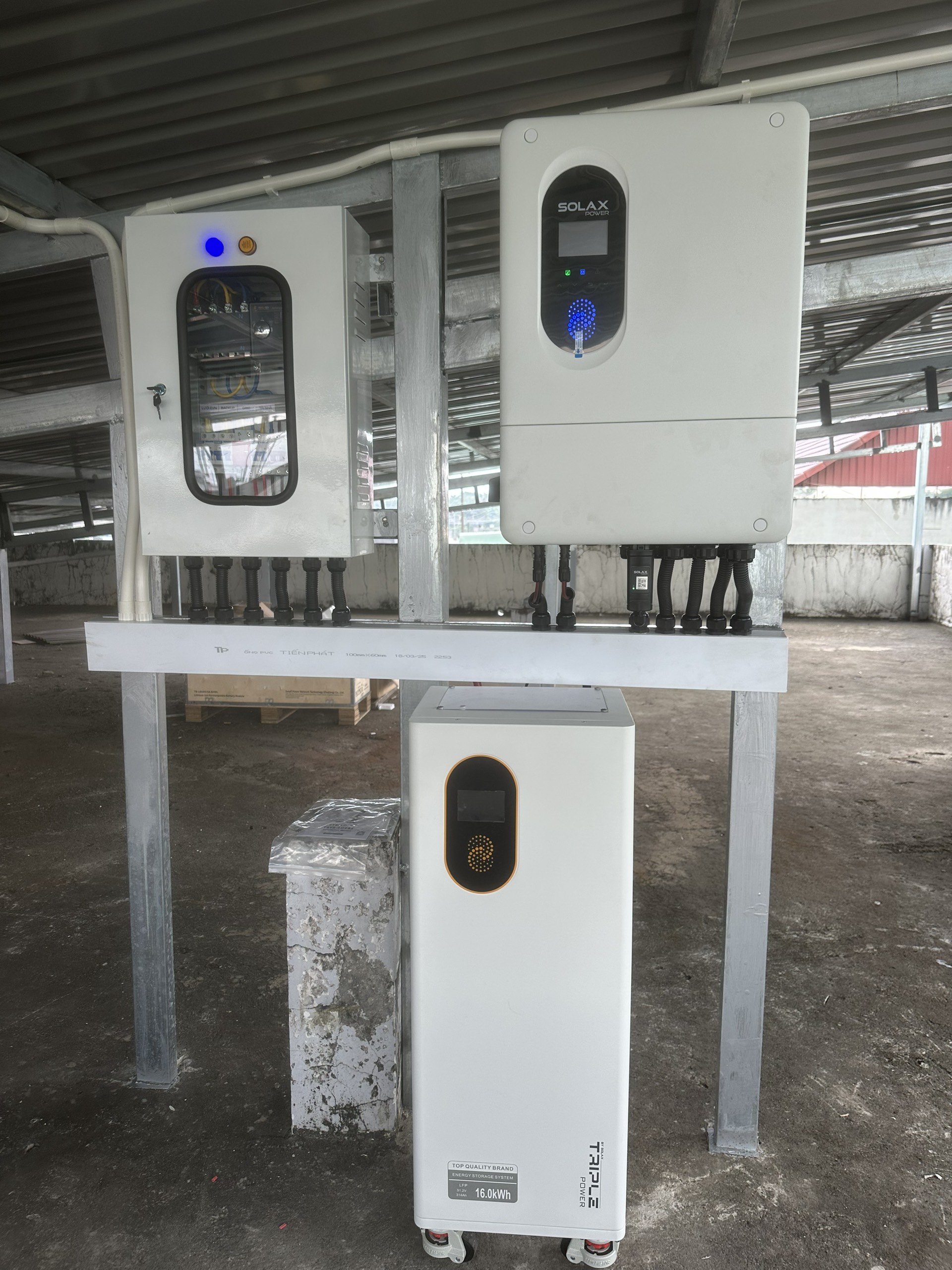 • Biến tần sử dụng: Inverter Hybrid Solax 10kW