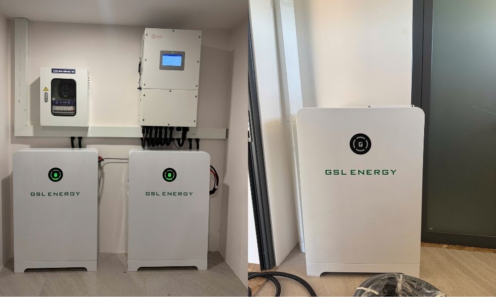 • Pin lưu trữ Lithium GSL 16kWh: 2 bộ với tổng dung lượng 32kWh. Đảm bảo khả năng tích trữ điện cho sinh hoạt ban đêm, duy trì điện khi mất lưới và tăng tính ổn định cho toàn hệ thống.