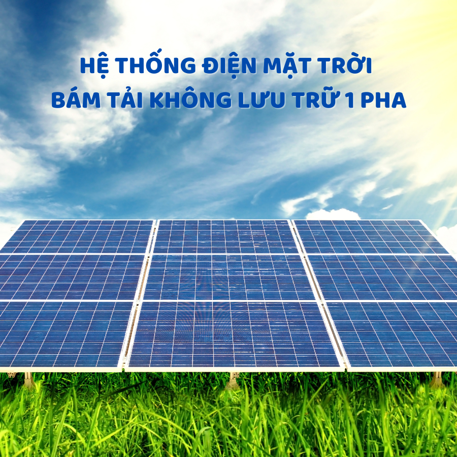 Hệ thống điện mặt trời bám tải không lưu trữ 1 pha là hệ thống điện mặt trời được thiết kế để cung cấp nguồn điện trực tiếp cho tải tiêu thụ trong thời gian có nắng mà không cần đến bộ lưu trữ năng lượng (như pin lưu trữ)