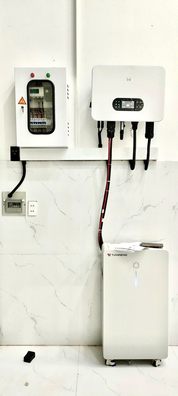 • Pin lưu trữ (Battery) Tianneng: "Trái tim" của hệ thống lưu trữ, giúp gia đình tích trữ năng lượng dư thừa vào ban ngày để sử dụng vào ban đêm hoặc những lúc mất điện lưới.