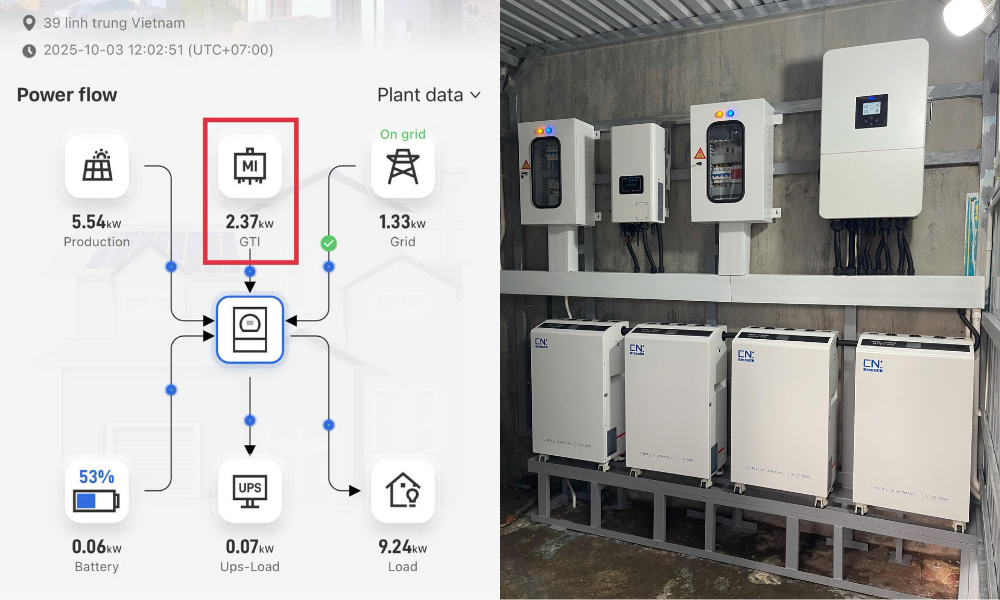 • Tự động phân bổ thông minh: ưu tiên tải – sạc pin – hòa lưới khi dư năng lượng.