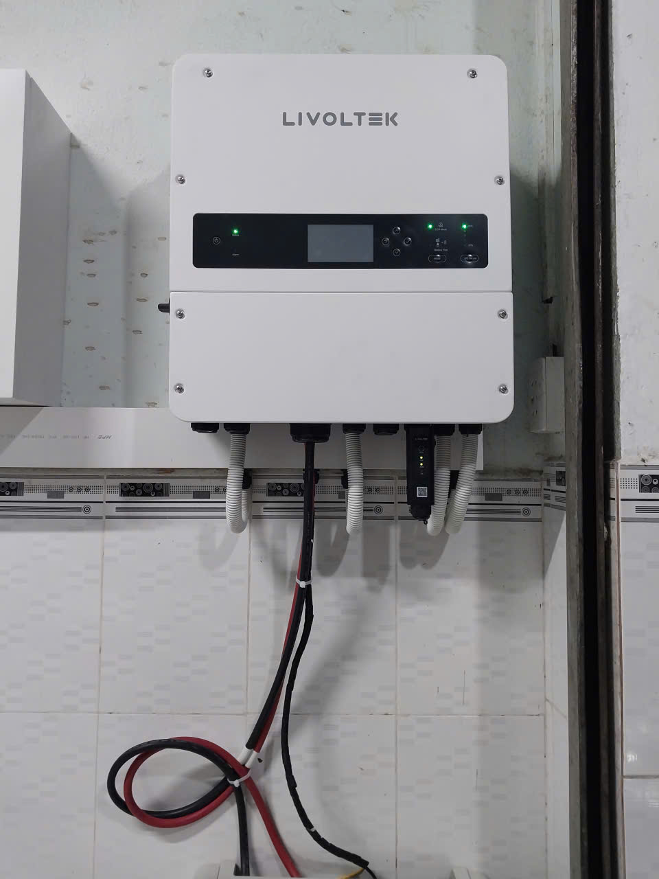 • Biến tần Hybrid Livoltek 6.7kW: Dòng Inverter thế hệ mới, vận hành êm ái, hiệu suất chuyển đổi cao và có ứng dụng theo dõi thông minh trên điện thoại.