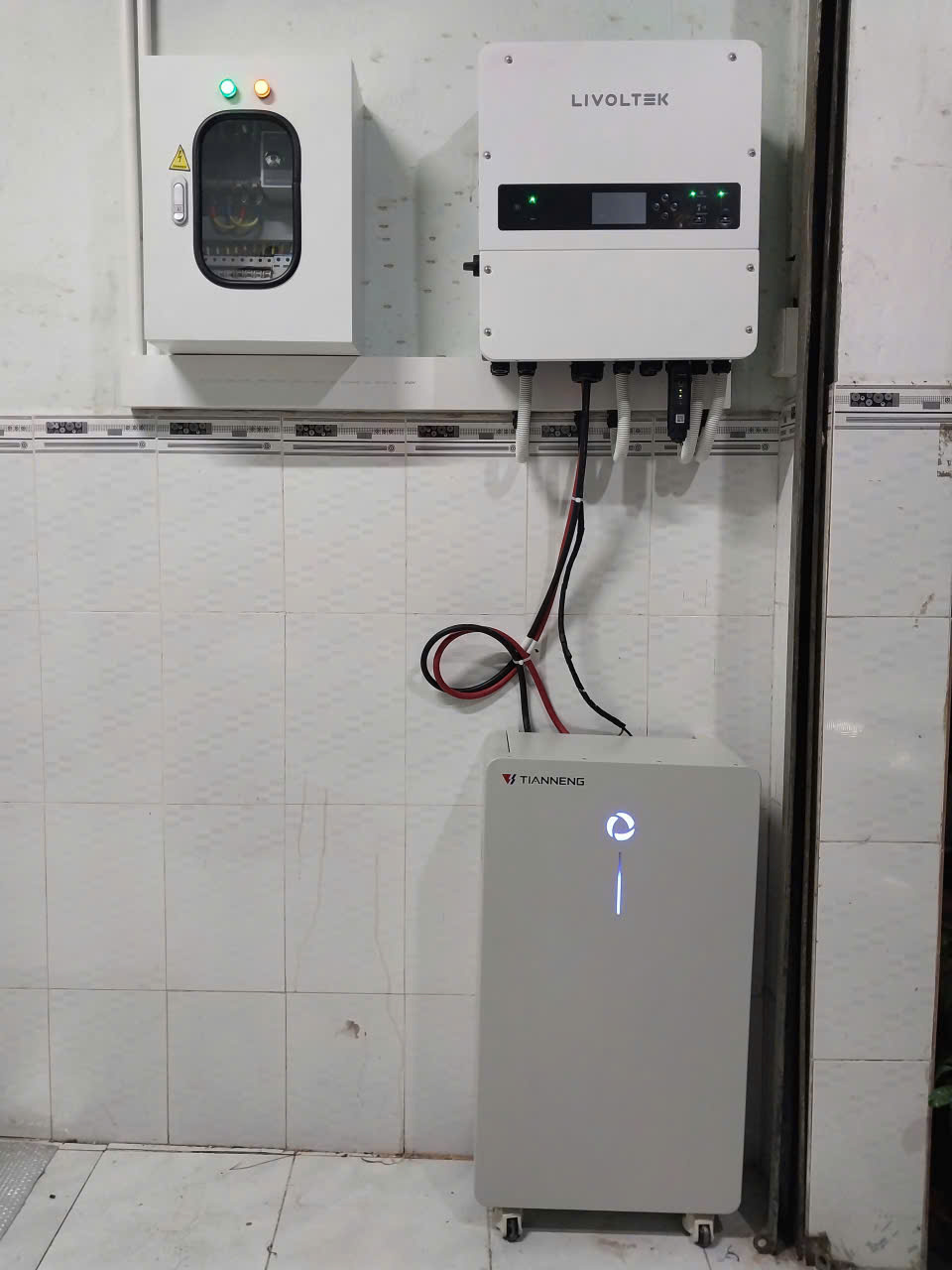 • Cấu hình hệ thống: Biến tần Hybrid Livoltek 6.7kW & Pin lưu trữ Tianneng 16kWh.