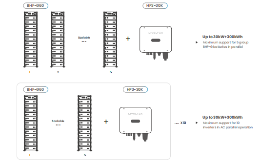 Dòng sản phẩm Livoltek BHF-G là mô-đun lưu trữ pin điện áp cao hiệu suất cao, có khả năng mở rộng, có thể được sử dụng trực tiếp làm nguồn điện dự phòng hoặc kết hợp với hệ thống quang điện để tạo thành hệ thống lưu trữ quang học, phù hợp cho các cửa hàng, khách sạn, nhà máy nhỏ và các trường hợp khác.